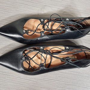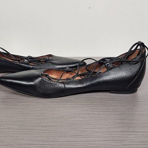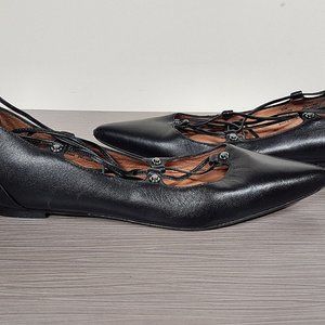 Halogen 'Owen' Pointy Toe Ghillie Flat Black Leather Womens Size 7.5 M