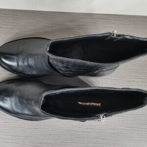 Halogen Quilted Moto Boots Block Heel Lug Sole, Black Leather, Womens Size 9 M