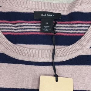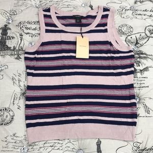 A crew neck adds to the classic style of this fitted tank top with stripes.