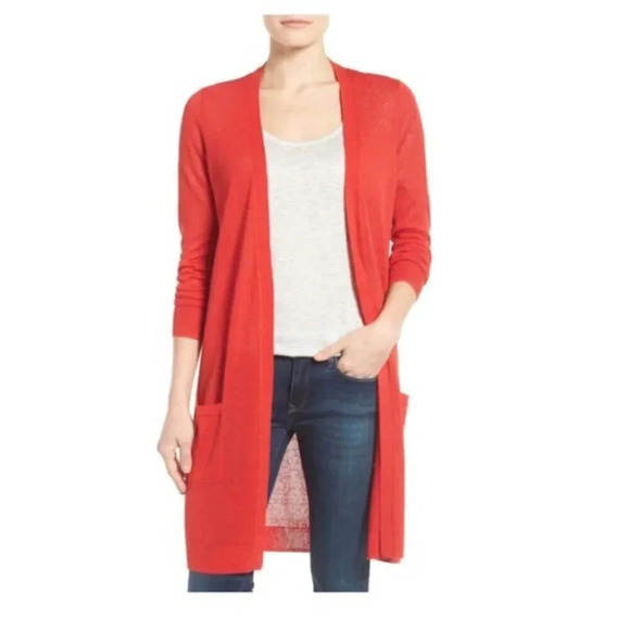 Halogen Womens Size Small Hibius Linen Long Line Open Cardigan