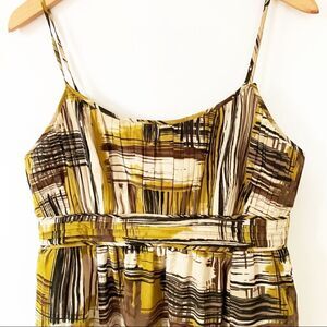 Halogen Yellow Browns Printed Silk Spaghetti Strap Pleated Pockets Dress