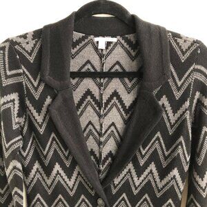 Halogen by Nordstroms 2 Button Knit Blazer Style Chevron Pattern Merino Wool Blend Cardigan Sweater in Black + Gray