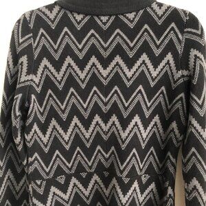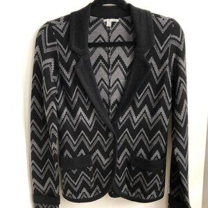 Halogen by Nordstroms 2 Button Knit Blazer Style Chevron Pattern Merino Wool Blend Cardigan Sweater in Black + Gray