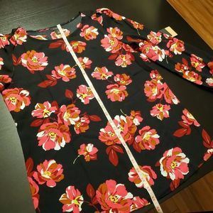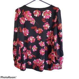 Long blouson sleeves frame this simply styled woven blouse that offers easy elegance for the office and beyond.