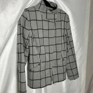 Halogen plaid blazer,jacket ,fitted,half zip jacket,chinese collar,career EC