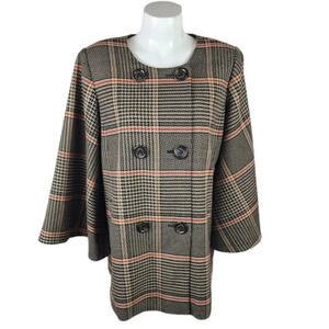Halogen x Atlantic Pacific Glen Plaid Pea Coat Bell Sleeve Tan/Black Size Medium