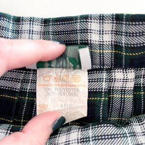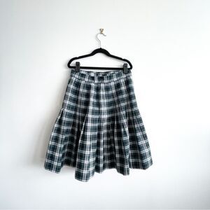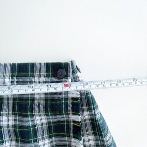 Halpern's Dark Academia Blue Plaid Kilt Skirt Safety Pin Women's 28 - 29. High Waisted classic vintage tartan navy green yellow and white plaid pleated wrap skirt kilt minis skirt. Incredibly well stitched and crafted with multiple inner and outer buttons for various fits. High quality fabric. Intentional front fray. Statement piece. Comes with safety pin. Tailored in Canada specifically for a private school. Not available through standard clothing stores. Very good used condition. Please see photos for approximate measurements.