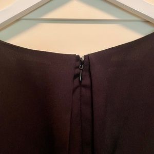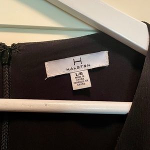 Halston black short sleeve, round neck, zip up back shift dress. Falls just below the knee, about 2" longer at the back with short side split detail. Pleated front and back detail for a flattering fit. Excellent condition, machine washable. Size Large - fits US 10-12