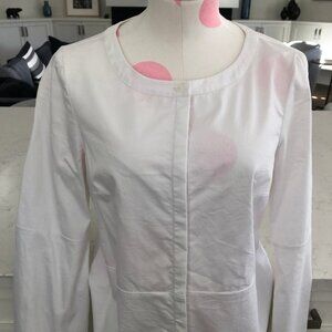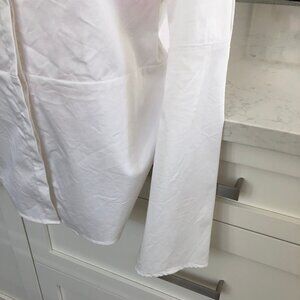 Halston Casual Boho Scoop Neck Bell Sleeve Cotton & Nylon Button Down Shirt in White NWOT