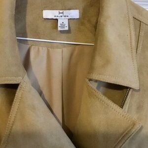 Halston Faux Suede Tan coloured bomber jacket Size 4
