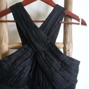 Halter style cross-over neck and v-neck back.