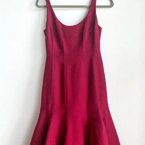 Halston Heritage Red Burgundy Sleeveless Mermaid Fit Flare Prom Red Carpet Gown