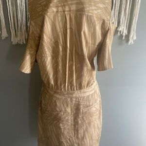 Halston Heritage Short Sleeve Cold Shoulder Dress Khaki Botanical Print