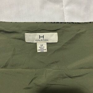 This Halston Heritage skirt showcases a graceful A-line silhouette in a refreshing green paisley print. Its midi length and lightweight fabric ensure comfort and ease of movement, making it an ideal choice for casual outings. The skirt's simple yet elegant design allows for versatile styling options.
