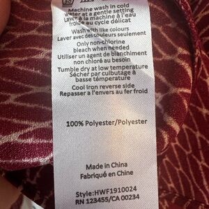 Chic red blouse with a striking pattern. Ideal for versatile styling.