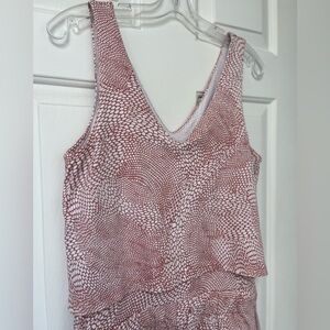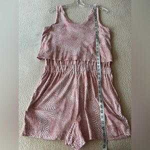 Stay effortlessly chic with this stylish romper from Halston Studio. Designed in a soft, lightweight cotton with a unique pink and white pattern that mimics a reptile-inspired print, this romper features a relaxed fit with a sleeveless V-neck top, elastic drawstring waist, and side pockets for added comfort and functionality. The top has a second layer that drapes to just above the waistband for a laid-back, flattering silhouette.