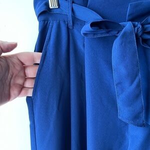 Halston wide leg high waisted belted blue paper bag cropped pants NWT small