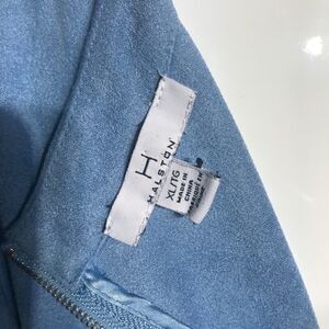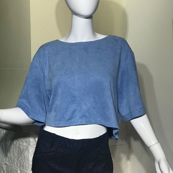 In beautiful preowned condition authentic 70’s HALSTON ultra suede cropped top in a gorgeous baby blue. Back half zipper, elbow length baggy sleeves.
