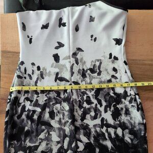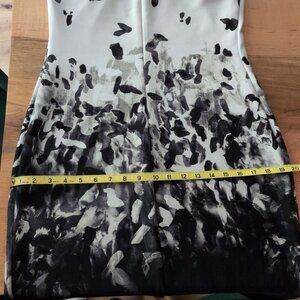 Well-made cocktail dress with invisible zipper. Care tag is missing, so not certain of material type, but it is classic Ribkoff and stretchy.