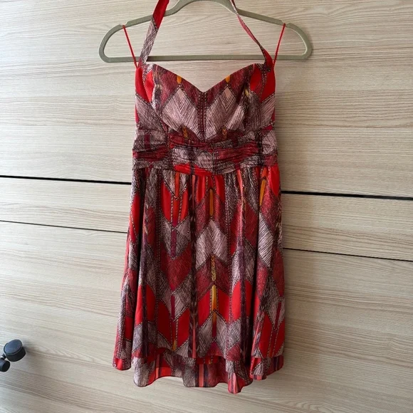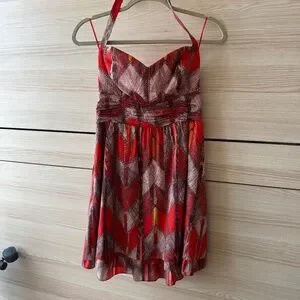 Orange patterned mini halter dress perfect with built in padding around breasts.