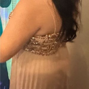 Halter Sequined Pleated A-Line Dress, lightly used, size 14, dry cleaned.