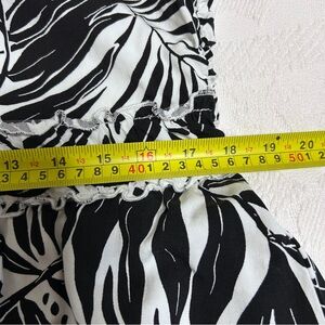 Halter Style Maxi Dress Women’s Size XL Black & White Leaf Print Ruched Back