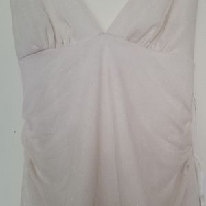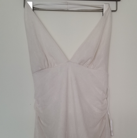 White halter top, has a bit of a glittery shine on it, very lowkey glittery