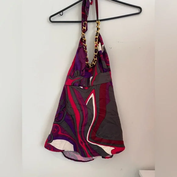 The gold chain strap adds a touch of elegance, making it perfect for any occasion. Fits like an xs
