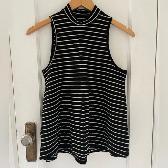 A-Line hem makes this soft top even more comfortable. Black with white stripes. Hardly worn, almost 8 years old.