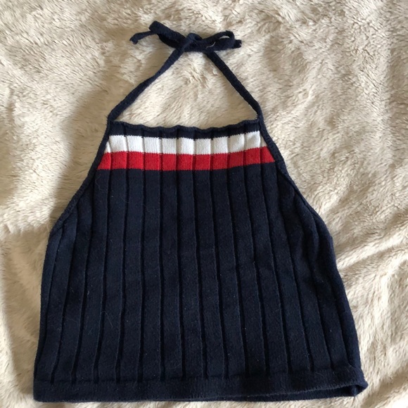 Cute navy blue halter top with white and red detail Thrifted with brandy Melville vibes