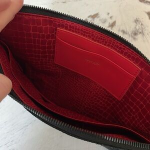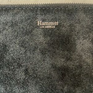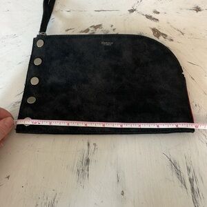 Hammitt "Richard" large suede wristlet with zip closure, credit card slots inside, back snap pocket, and gunmetal hardware. Approx. 9"L x 1"W x 7”H.
