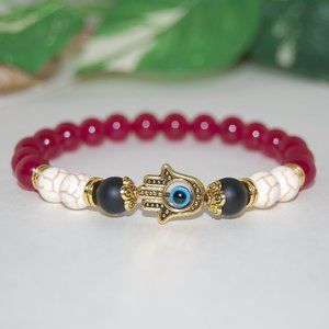 Hamsa Hand Bracelet,Agate Bracelet,Golden Hamsa Bracelet,Good Luck Bracelet