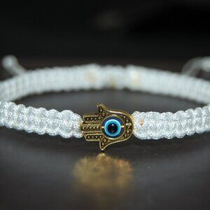 Hamsa Hand Bracelet,White Hamsa Hand Bracelet,Evil Eye Bracelet,Drawstring Style