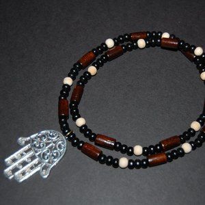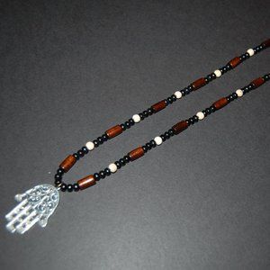 Hamsa Hand Necklace,Wood Beads,Judaica Symbols,Kabbalah Necklace,Man,Good Luck,Pray,Spirituality,Prayer,Yoga,Protection,Meditation