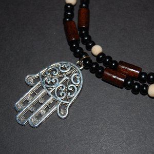 Hamsa Hand Necklace,Wood Necklace,Judaica Symbols,Kabbalah Necklace,Men Necklace
