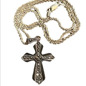 Crafted from high grade stainless steel and black cubic zirconia set stones. 17”+1”