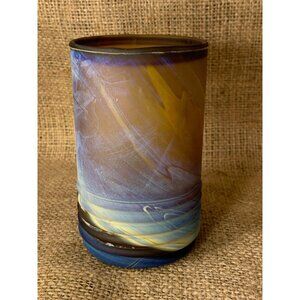 Hand Blown 4" Art Glass Cup or Candle Holder Beautiful Swirl Design