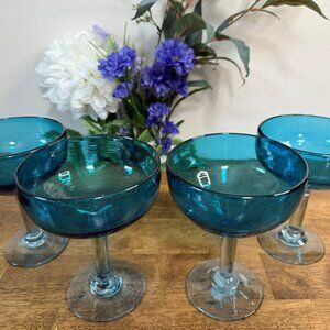 Hand Blown‎ Blue Coupe Glasses Set of 4 – Biot France Style Bubble Glass Barware
