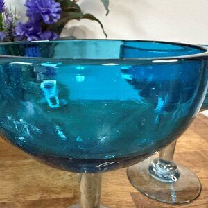 This gorgeous set of four hand-blown blue coupe glasses is a showstopper. With their rich Mediterranean hue, classic wide bowls, and clear bubble-filled stems, they closely resemble the distinctive style of Biot glass from France. Each glass features beautifully imperfect artistry, with subtle bubbles and a satisfying weight that adds to their charm and authenticity. 📌 Why they’re special: These hand-crafted beauties are likely made in the style of Biot glassware from France. Their brilliant ocean-blue bowls and visible air bubbles in the stems give them that unmistakable artisan touch—perfect for vintage barware collectors or anyone who loves a pop of colour on their table. 🌿 Condition: Excellent condition with no chips, cracks, or repairs. Light wear from age. Beautiful clarity and sparkle in the glass. ⏳ Era: 1970s–1990s 📏 Dimensions: Each glass measures 12.5 cm x 12.5 cm x 16 cm (5 in x 5 in x 6.3 in) Capacity: 14 oz 🎨 Colour: Vibrant cobalt-aqua blue with clear stems 💡 Perfect for: Cocktail parties, margaritas, vintage glassware lovers, beach house decor, French provincial or Mediterranean table settings 📸 See pictures for additional details ✨ Ships from our family-run shop in Ontario, Canada – carefully packed with love!