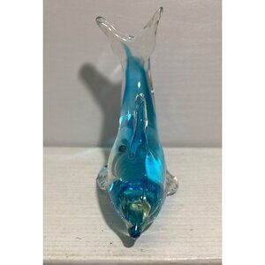 Hand Blown Glass Dolphin Figurine Paperweight Blue & Clear 6" Beach Nautical