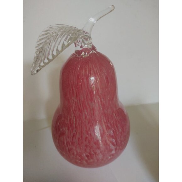 Stunning glass artwork, pink mottled pear with clear leave and stem...Stands 8 1/2" Tall with a 5" diameter at it's widest point. Weighs 2 lbs. 3 ounces -- heavy glass