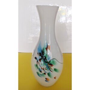 Hand Blown Italian Opaline Abstract art swirls Glass vase 9"