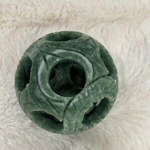 Hand Carved 3 layers Green Stone / Jade Magic Puzzle Ball Sphere Carved