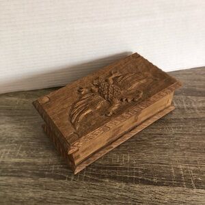Beautiful hand carved wooden treasure box with intricate eagles design. Perfect for storing small treasures. Key locks and unlocks well, no resistance.