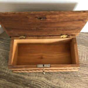 Beautiful hand carved wooden treasure box with intricate eagles design. Perfect for storing small treasures. Key locks and unlocks well, no resistance.