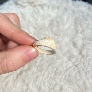 Hand carved leaf/feather shell ring excellent condition approximately size 7.5