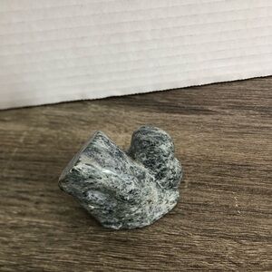Green stone carved into a little owl with a tree stump, the top of the stump is a heart shape. Not signed and the original sticker from the bottom seems to be missing.