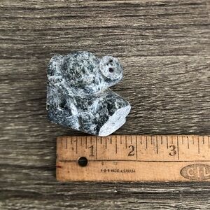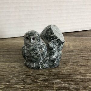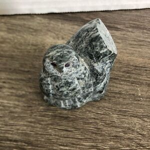 Adorable little owl looks even better in real life, photos are kind of weird with the grain on the stone. It’s very detailed but you can’t really tell from the photos. His eyes appear to be amethyst.