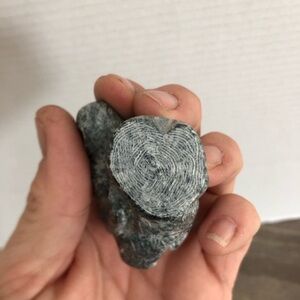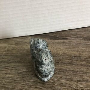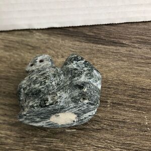 Green stone carved into a little owl with a tree stump, the top of the stump is a heart shape. Not signed and the original sticker from the bottom seems to be missing.