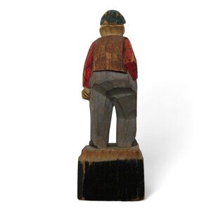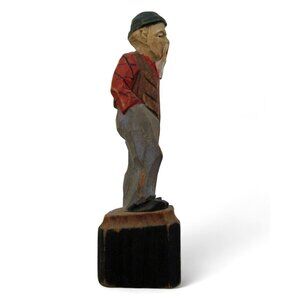 This hand-carved wooden figurine captures the charm of rustic folk art.